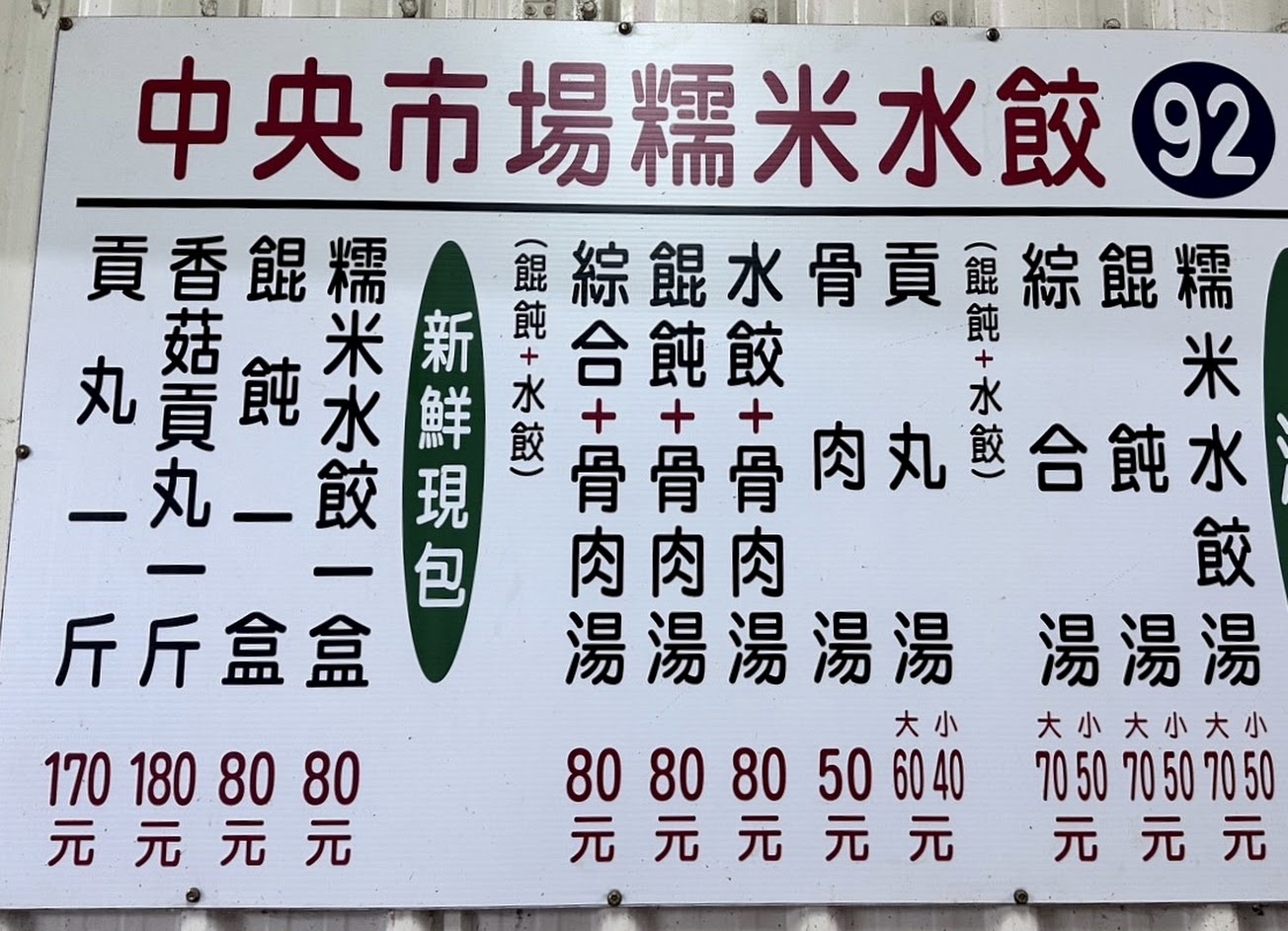 外地來的建議直接用問的找比較快, 沒有很好找?, 記得92號不要吃錯家喔! 一邊排生食一邊排熟食外帶的喔, 內用找好位子後, 老闆娘會來問你點什麼, 如果很在意環境的不要內用, 就是市場攤位嘛, 糯米水餃其實就算鹹湯圓, 不是Q的,是軟軟的, 內餡有醬油調味,鹹口的, 骨仔肉太早太晚來都可能吃不到, 必點非常好吃!!!