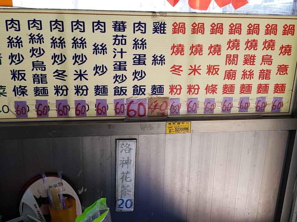 鍋燒意麵,炒烏龍麵,茄汁炒飯都60元,各式冰品,飲料