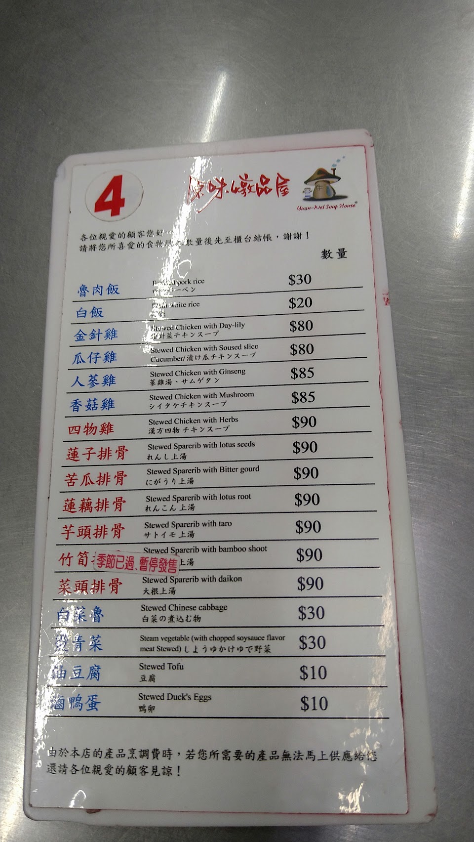 到現場說排骨湯只請剩蓮子,但我不喜歡蓮子。沒喝到燉湯有點可惜,下次再來喝湯。