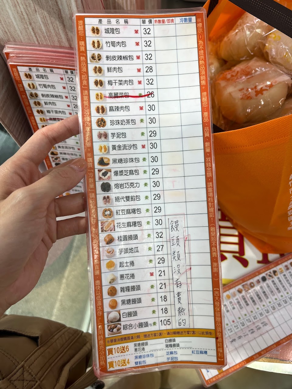 離開返家後,打開袋子要分送朋友才發現內容錯的離譜,剛剛還在櫃檯跟我確認心酸的嗎?不是錯一兩個而已,我都買包子,也選送四個包子,結果送的也拿錯,給我兩個饅頭,真心傻眼……