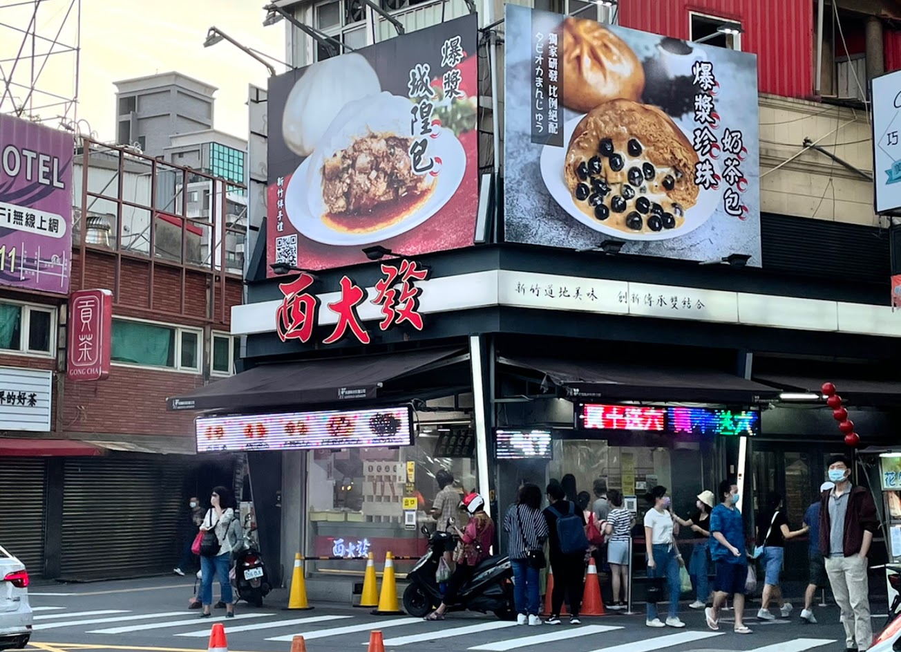 新竹城隍廟週邊十分知名的包子店,種類之多讓人眼花撩亂,對選擇障礙者十分不友善,包子的價格也十分的奇怪,城隍包跟一般肉包不太一樣,看來網路上的說明好像有兩種肉(五花肉跟梅花肉)混搭,總而言之,是一種跟一般肉包有明顯區別,但是是好的特色的包,本人對花生麻糬包十分期待,但是後來發現,好像沒有甚麼麻糬的痕跡?(買回家蒸的)但是花生可以爆漿很讚,芝麻包跟珍珠奶茶包跟熔岩巧克力也一整個爆漿很棒,好像爆漿不用錢一樣,肉包也是汁多味美,整體而言就這次購買的包子裡面幾乎沒有踩到什麼雷,但是種類真的太多了,以後如果有機會再造訪,想要再嘗試更多更多口味!