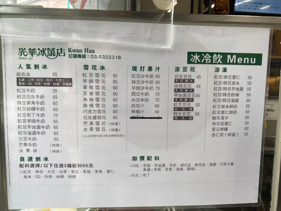 2024最新在地推薦餐廳的菜單_光華冰菓店的菜單、圖片