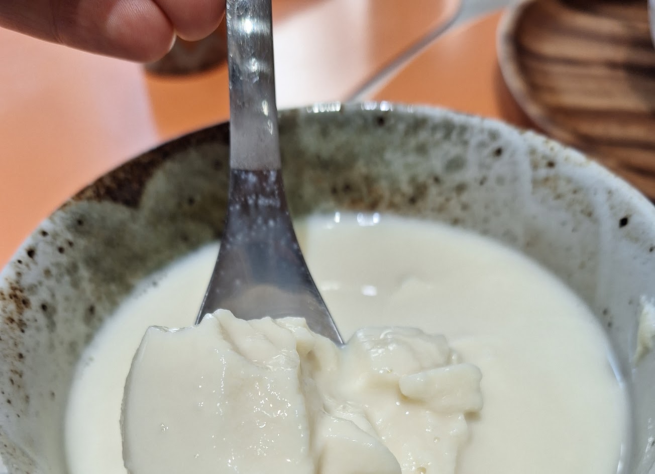 如果您正在尋找濃稠、正宗、豆香濃郁的豆花,那麼這家店就是您的最佳選擇!我很少見到如此濃稠的豆花,它絕對美味。我通常不吃甜食,所以無糖豆奶的選擇給我留下了深刻的印象。我們還選擇了黑糖冰,也很美味,而且不太甜。每個碗都非常精美,並配有一小杯茶。這家店在一條安靜的小巷裡,氣氛很輕鬆,一定會回來的! ????