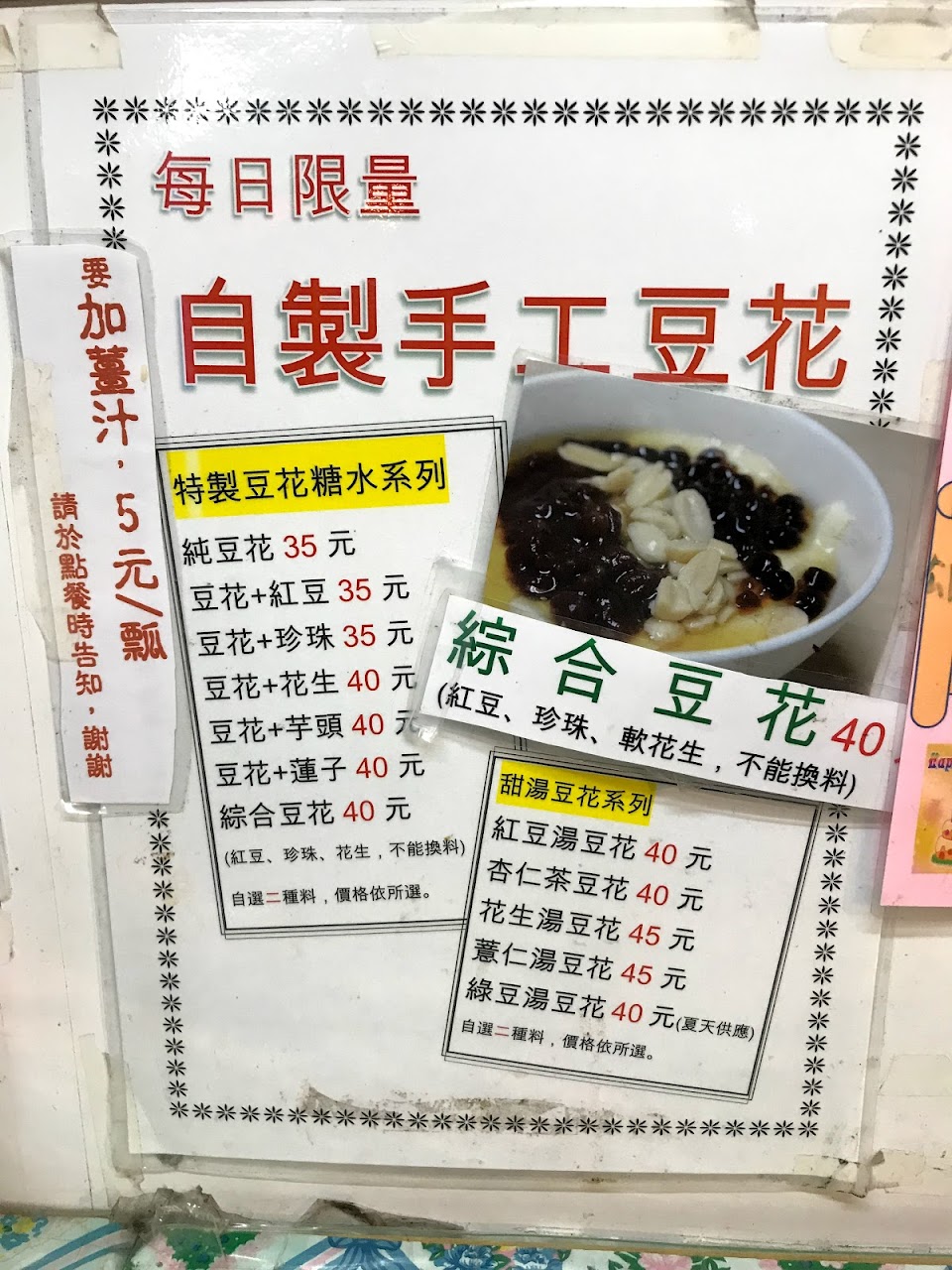 花生湯煮的很綿,紅豆也夠沙,料的份量實在,可以額外加薑,在冬喝一碗真舒服