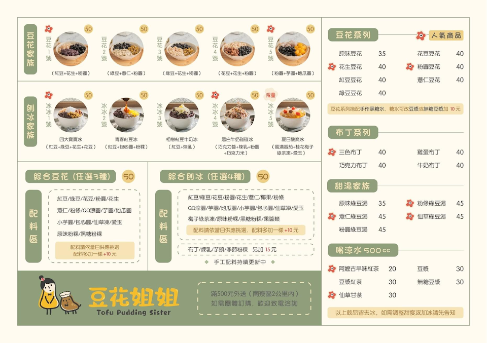 2024最新在地推薦餐廳的菜單_豆花姐姐的菜單、圖片