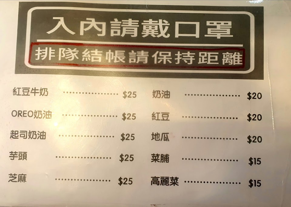 點了紅豆牛奶.芋頭.奶油.菜脯.高麗菜