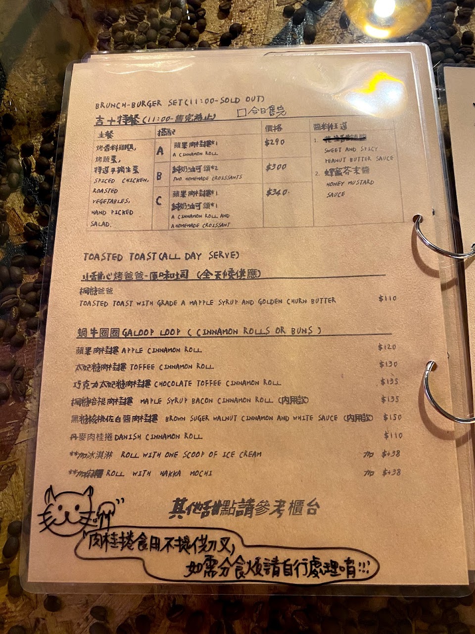 週五下午三點多到店,肉桂捲剩一種口味可以外帶了~但店員還是親切有耐心的介紹,好感Max?