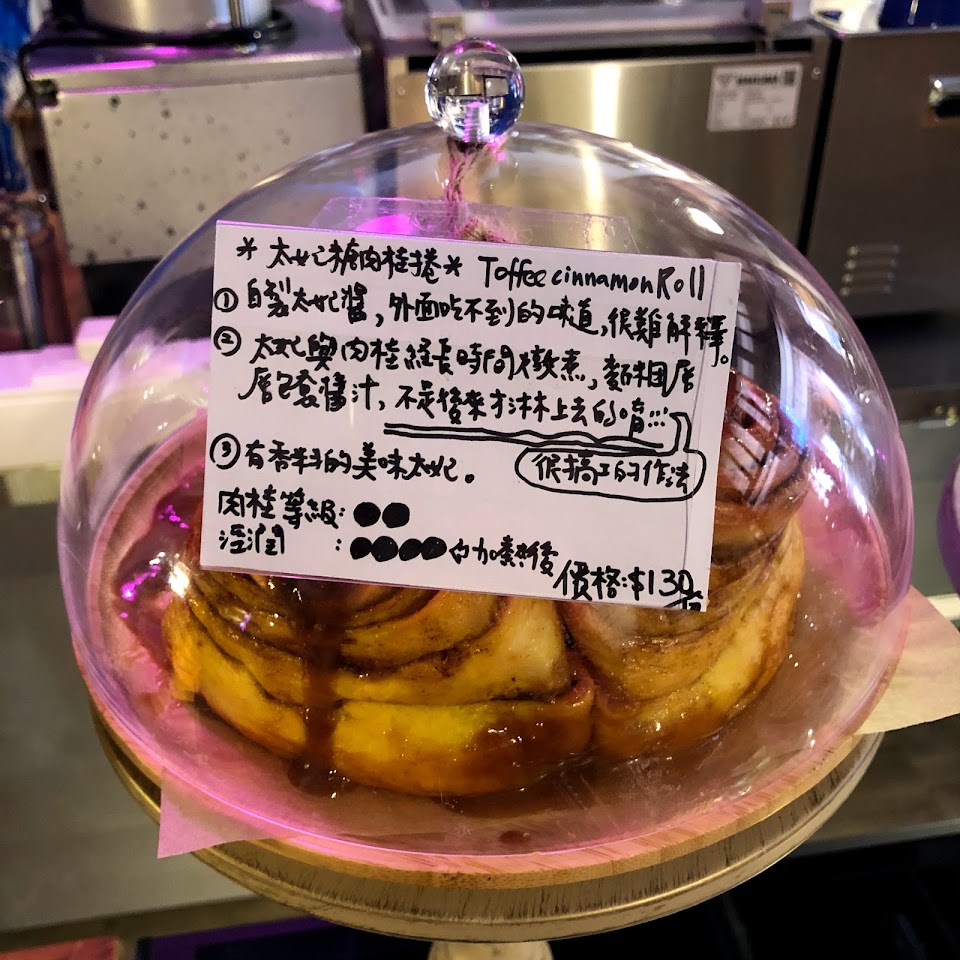 店面裝潢很棒,店員很活潑可愛,也細心介紹肉桂捲的口味和甜度。太妃糖肉桂捲味道濃郁,口感很棒完全不會失望,可惜這次去是外帶沒有提供加熱服務,會想再二訪吃吃看其他口味
