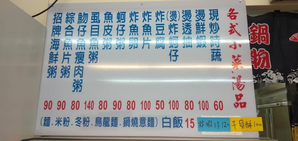 2024最新在地推薦餐廳的菜單_鮮味海鮮粥(民富街)的菜單、圖片