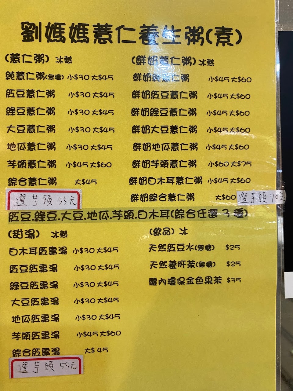 2024最新在地推薦餐廳的菜單_劉媽媽養生薏仁粥的菜單、圖片
