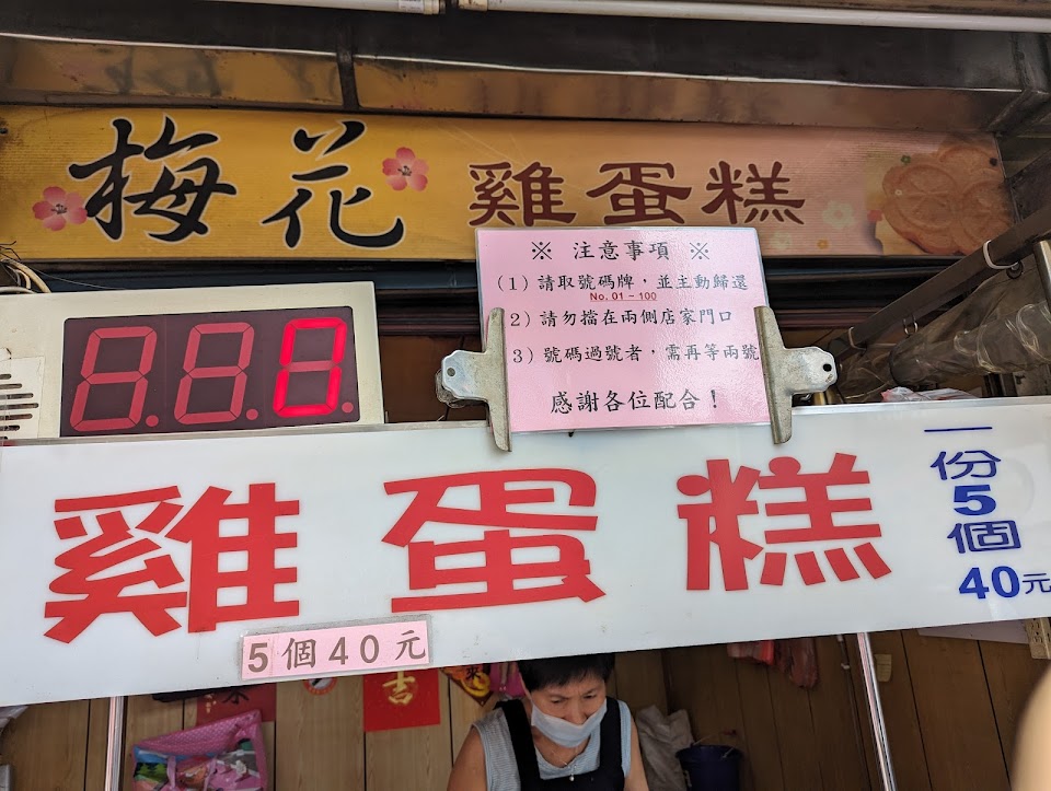 眼見老闆在炎熱的小店內努力的烤雞蛋糕,外面先生努力的幫梅花雞蛋糕散熱(畫面很有趣),我們也跟著乖乖地排隊,果然~我們也跟著乖乖地排隊,果然好吃又紮實?。店家老闆不斷叮嚀排隊客人不要靠馬路 進來一點,外場散熱先生態度也很親和。