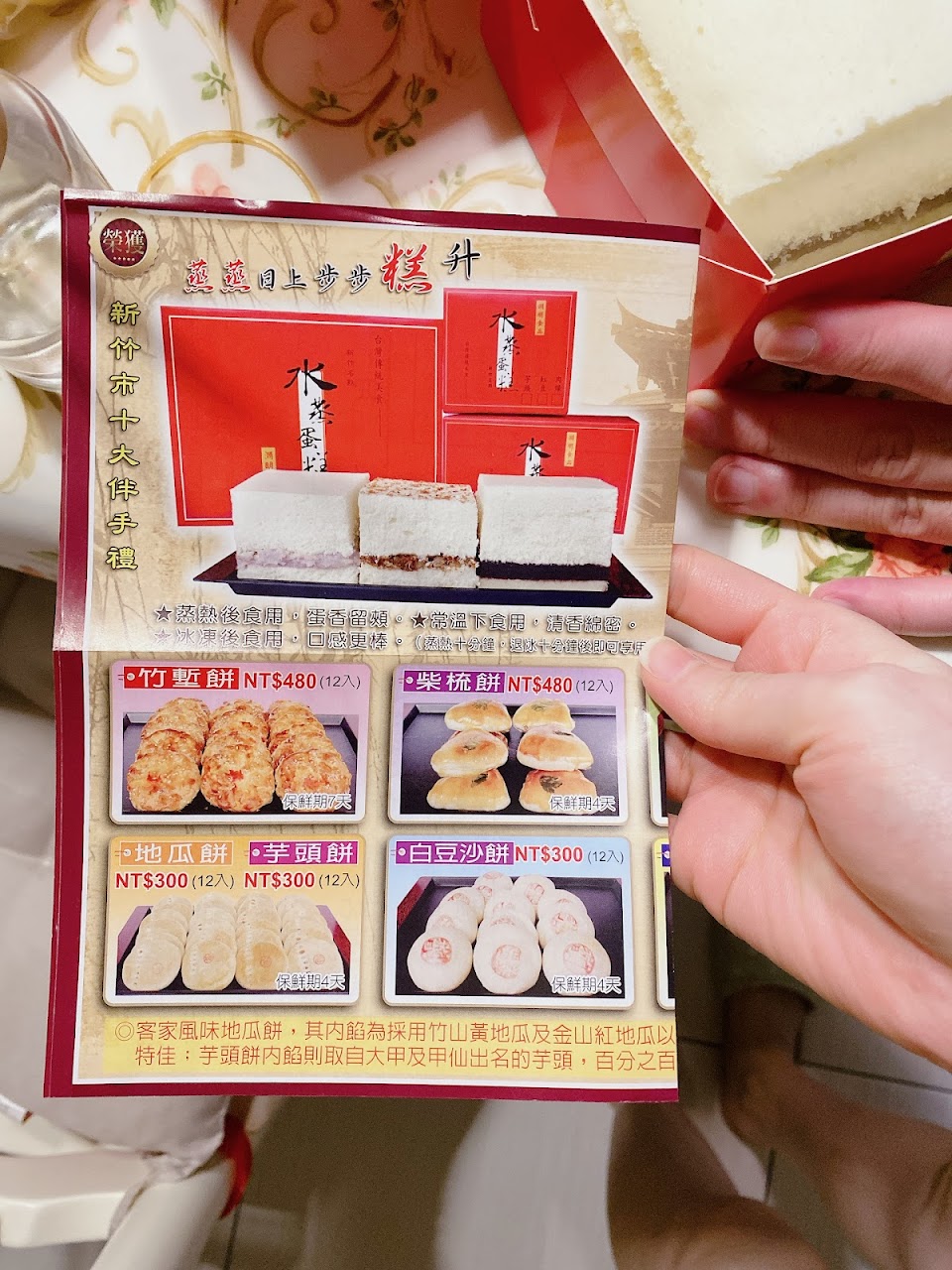 當日買的時候店員服務很親切,告知因為水蒸蛋糕還是溫熱的,所以盒子不封緊,當日若未吃完可放到隔日中午、下午時段。