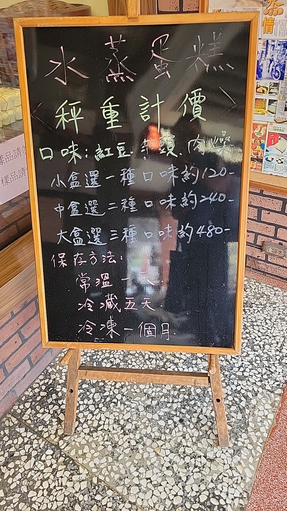 水蒸蛋糕紮實很有重量,口感、口味都很好。晚一點去會買不到…..。