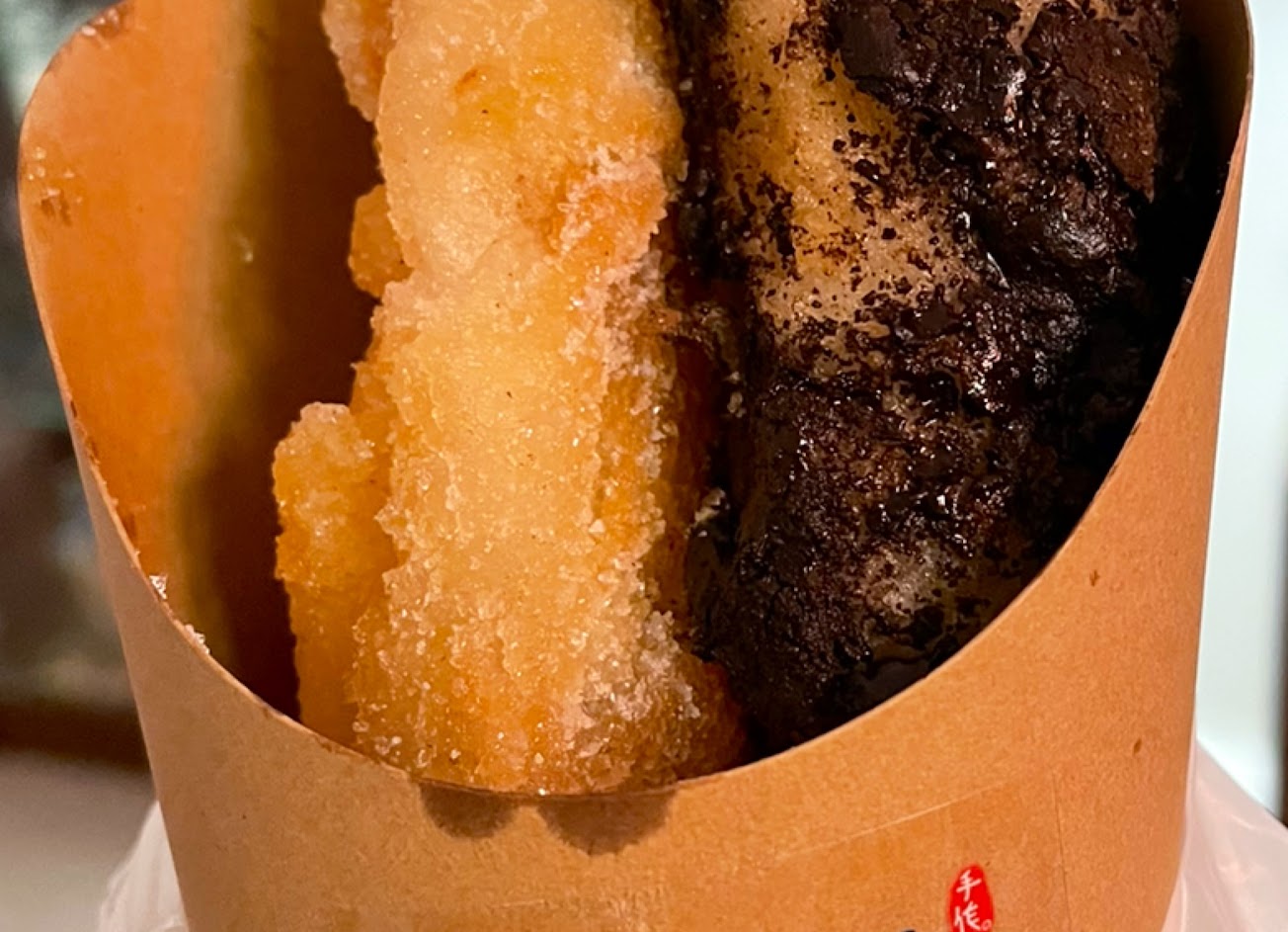 昨天晚上購買,選了鐵觀音可可+花生口味,白糖粿本身外殼炸得很酥,內餡像麻糬軟綿綿,真的超好吃,不過鐵觀音可可本身苦味滿重的,不太甜,果然還是要選白糖或者花生口味比較平安保險。花生口味真的超~~~~~好吃!