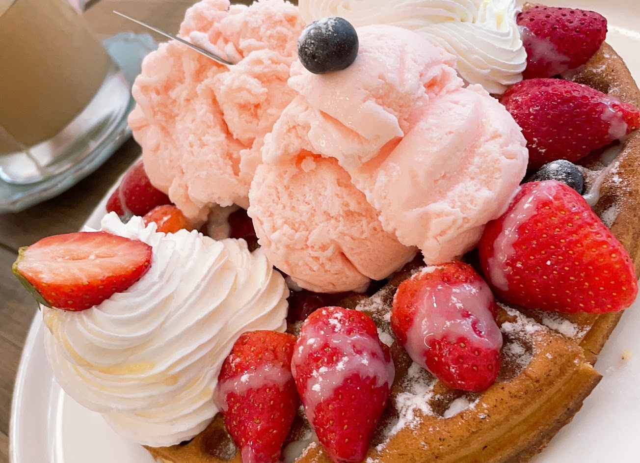 草莓冰淇淋鬆餅視覺與味覺的最高享受,酸酸甜甜又有奶油冰淇淋混搭的多層次?。復刻烤黑糖鮮奶(熱),是一種溫暖洋溢的好滋味。? …