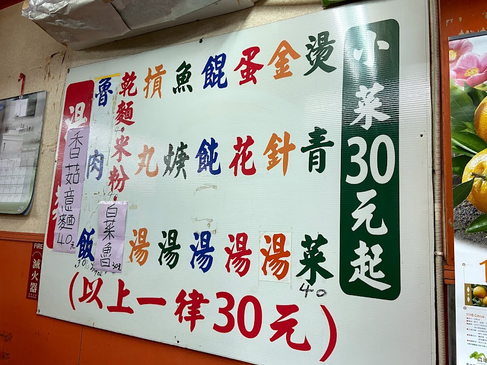 O:什錦炒麵,炒青菜,炒三鮮,鐵板麵,厚片牛排,海鮮湯麵,牛肉炒飯。