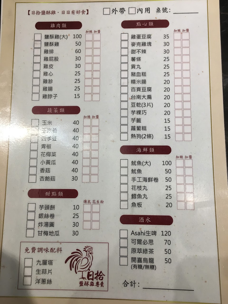 價格偏高,但每項都好吃,推魷魚腳跟鹹酥雞,如果想要鹹一點要提前講,有座位可以店內吃,消夜好選擇,非常不錯。