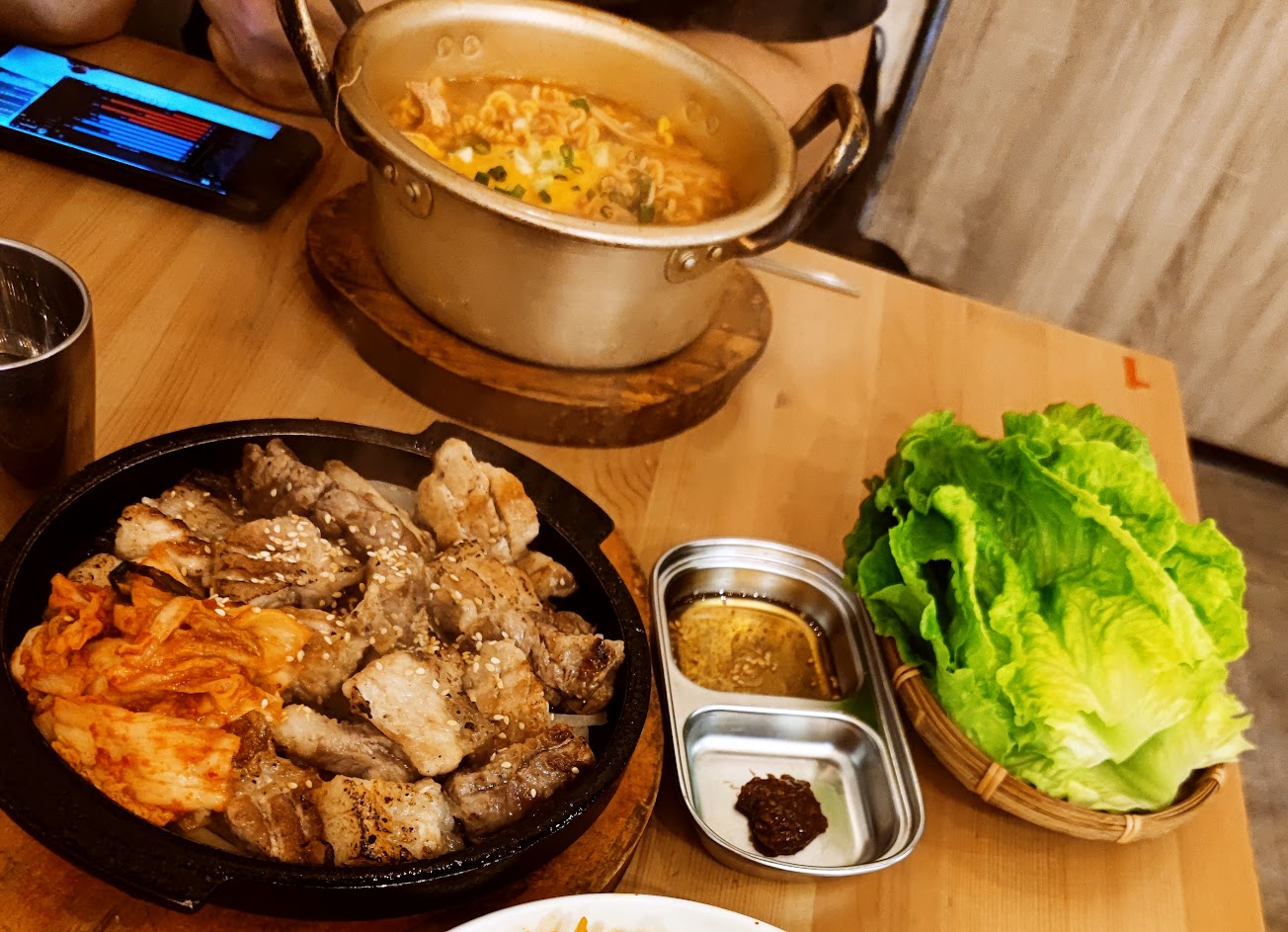 白飯跟自助區擺一起,並未貼公告或是告知不能自取,事後再說有裝白飯要15塊,結帳時向店員反應應該貼公告告知,店員卻說是今天這個鍋子沒貼,所以是鍋子的問題嘍?!等待時間長,大部分都是一桌吃完下一桌的東西才有開始上,店內油煙味混雜著一種怪味,有些客人入內聞到味道就離開了。東西不難吃,可是石鍋拌飯太硬,感覺刻意要做鍋巴,石鍋又會持續加熱導致鍋巴太硬。水蒸蛋跟一般家裡做的蒸蛋差不多,只是比較乾。