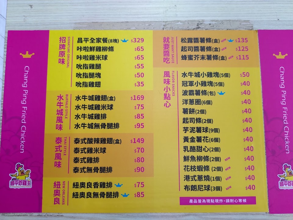 2024最新在地推薦餐廳的菜單_昌平炸雞王 天公壇店的菜單、圖片