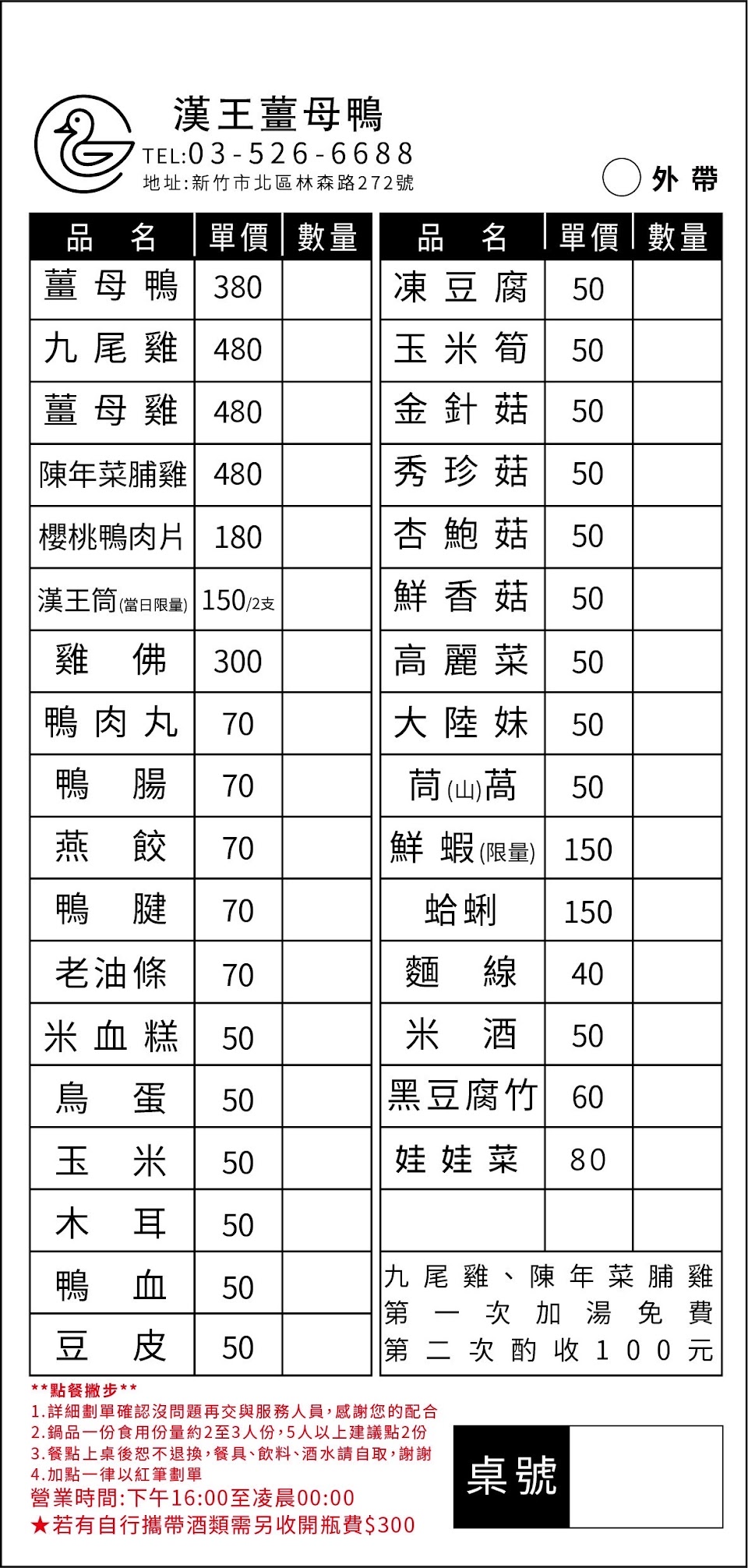 2024最新在地推薦餐廳的菜單_漢王薑母鴨新竹林森路(僅此一家獨家配方)的菜單、圖片