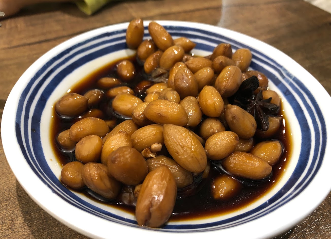 滷花生燉的很透,花生中間還有些硬度,不會有軟爛的口感,但味道又有透進去很厲害,有蠻重的八角香氣。