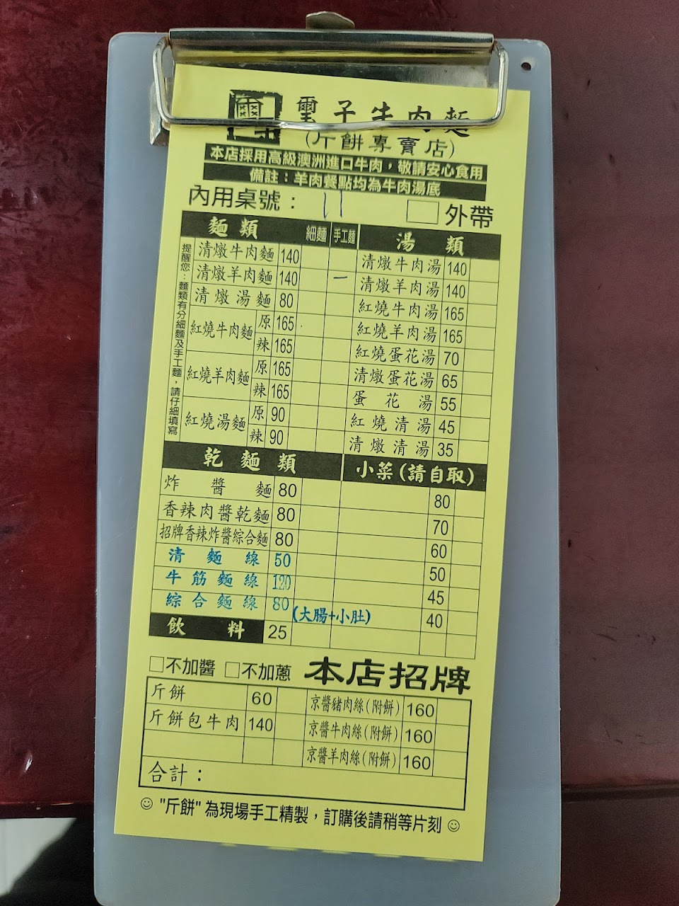 麵條有嚼勁,牛肉很大塊稍微不好咬,湯頭不錯,喝多略鹹 服務很好,有人打翻東西,服務人員友善的收拾完畢 店門前還算寬敞,機車可以方便的停車