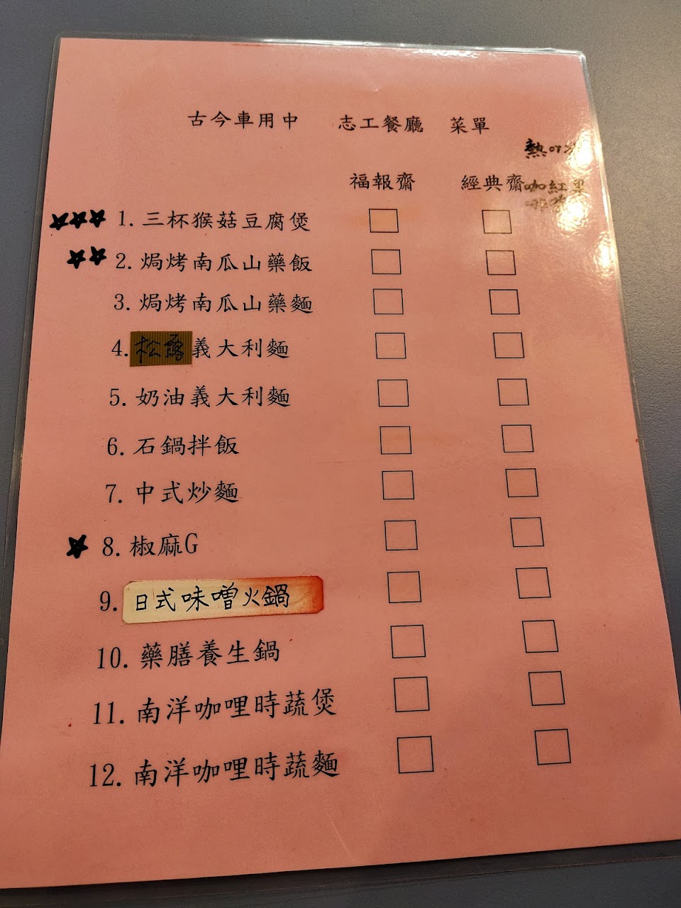 眾多素食料理,還有老爺車可以拍照,製作老爺車馬克杯