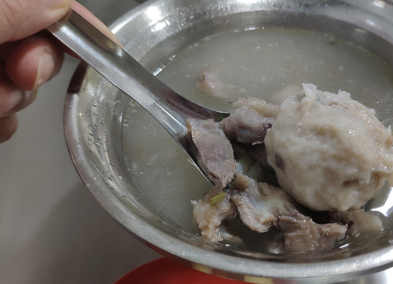 魚羹骨肉湯,湯頭不是很優,沒有骨肉湯久熬的那股厚潤感,也沒有魚羹湯的那般清甜,而且肉吃起來還有點豬騷味,但魚羹倒是紮實脆口。