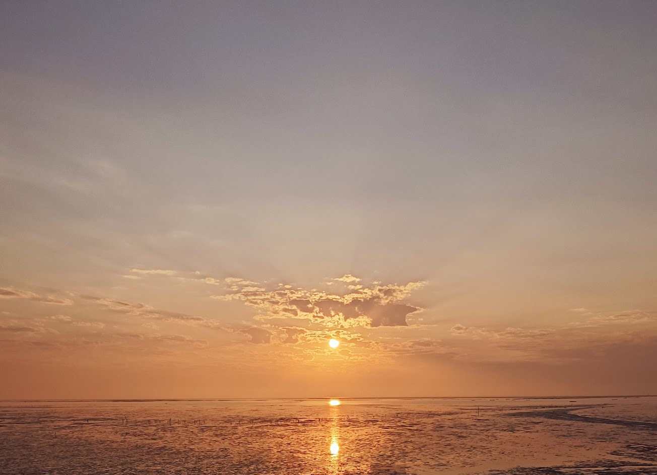我在這裡學會了挖環紋蛤蜊,知道了很多新知識,如果要來,最好有人帶,因為濕地坡度很小,幾乎是平的,漲潮時,海水進來的速度很快,但速度沒有一天是一樣的,我的前輩有一天貪挖,才五分鐘的速度,從沒水到水深及膝只有短短5分鐘,他帶著漁獲,僥倖脫險,他直呼詭異,因為以前這樣貪挖,也沒漲的這麽快,而且那次慌張退回時,超幸運,要知道濕地有些地方很軟,踩下去可是會陷到小推肚的,何況水蓋住側退路線時,根本不知道那危險的陷泥是不是在下一步。