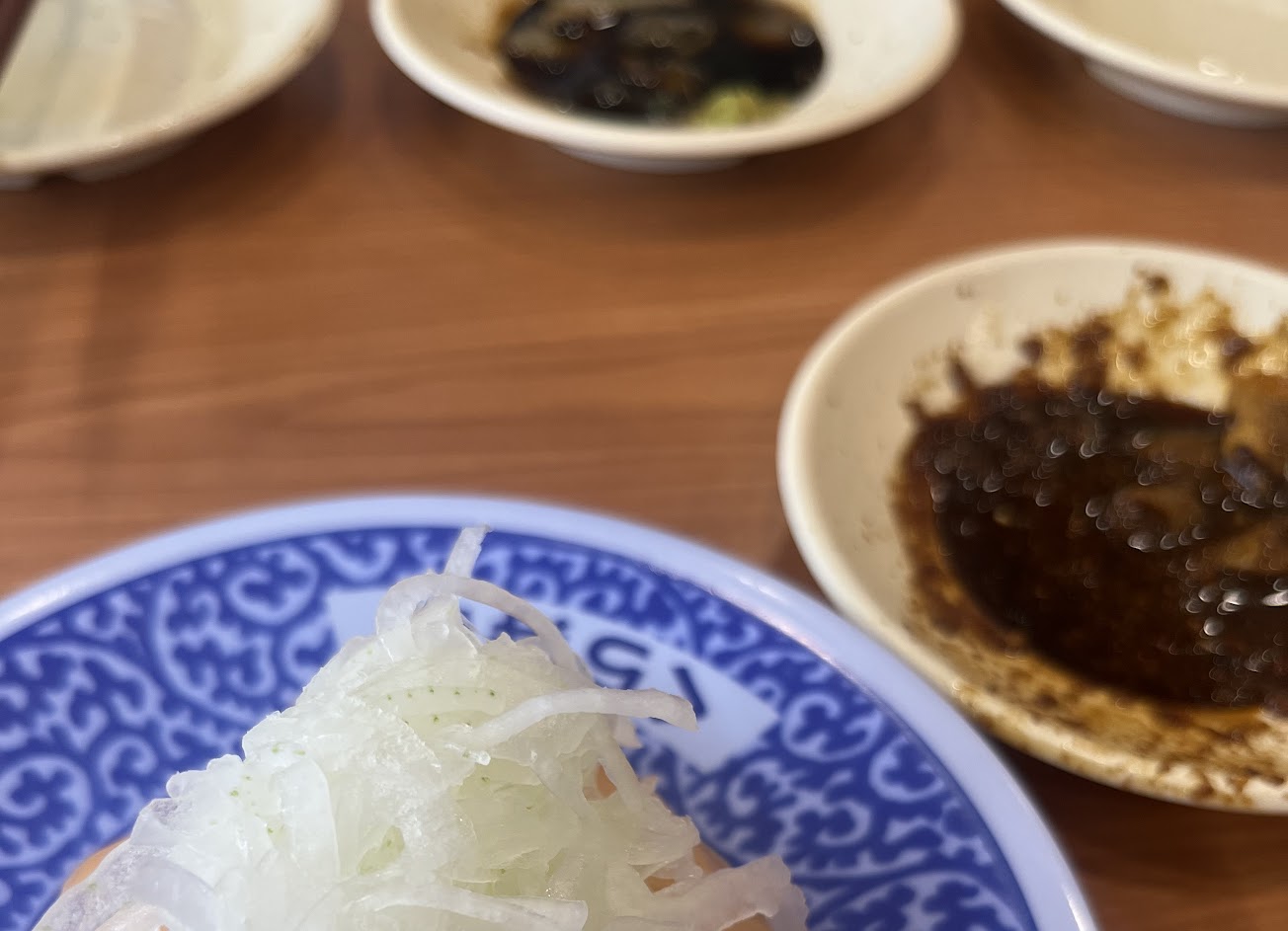 約在開店後五分鐘到店內用餐 坐下來點的壽司都來了 轉盤上轉了好幾圈都沒看到山葵 鹽巴等 想自己去櫃檯旁邊拿也是空的 剛好隔壁的客人請服務員先送幾包過來 詢問後得知迴轉台已經補上了 要我再等等(又等了一圈才拿到)