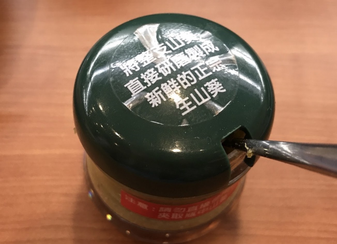 吃的時候,就照正統日本壽司的吃法,將新鮮山葵放在魚片上,包捲起來,以魚肉蘸醬油,這才能吃到山葵的原味。記得醬油只要沾一點點在魚肉片上,很多情況甚至不需要沾醬油,就能享受壽司滋味。