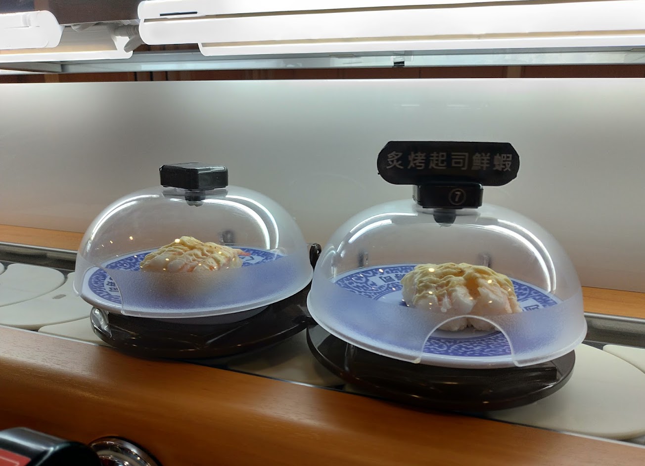 吃的方面,更加接近日本原有的迴轉壽司。例如茶是使用抹茶粉來泡的,而非使用茶包。芥末醬(山葵)也是小小一罐而非包裝型,讓你一看就知道不是芥末跟醬油混在一起那種吃法。