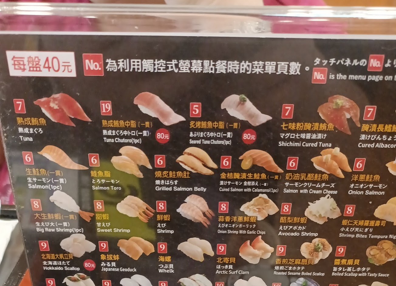 每次來這裡吃壽司我還是偏向鮭魚多一點 雖然一盤價格$40,但至少新鮮、好吃 而且本人真的很愛鮭魚啦^_^