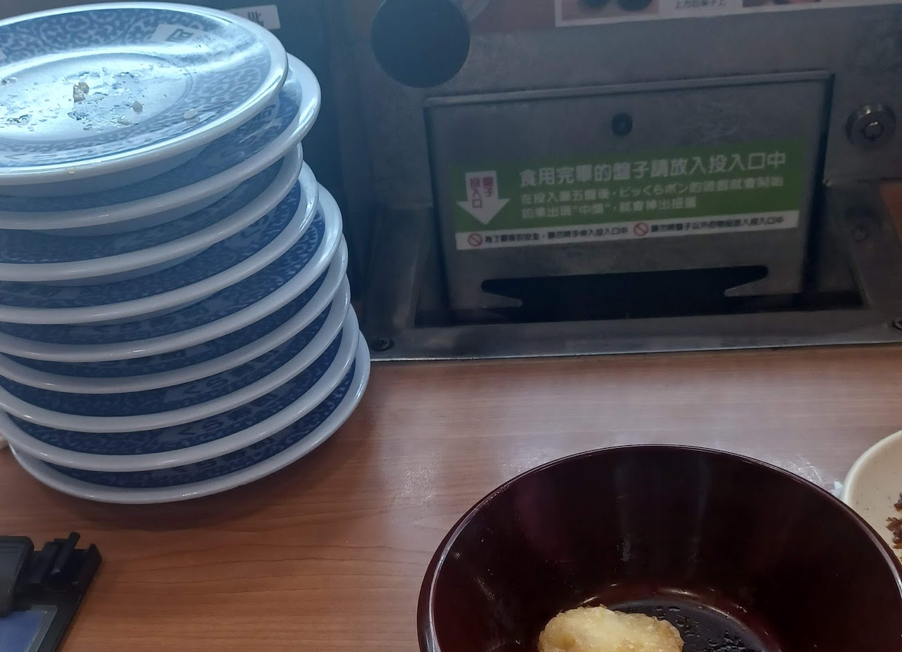 吃了很多次,這幾次明顯覺得衛生不ok 杯子摸有一層灰、飯有異味、桌子有臭味(可能是抹布沒洗乾淨就拿來擦桌子),之後應該不太敢來吃了,扭蛋也很難抽,之前鬼滅時去,吃了兩次大概都25盤左右都沒抽到,錢也常常算錯,之前明明吃930元,結果到櫃檯結帳突然變1930元,跟店員反應也只回喔那就幫你更改回來,好像算錯錢是小事一樣,萬一我沒算,相信你不是就虧了1000元了?!