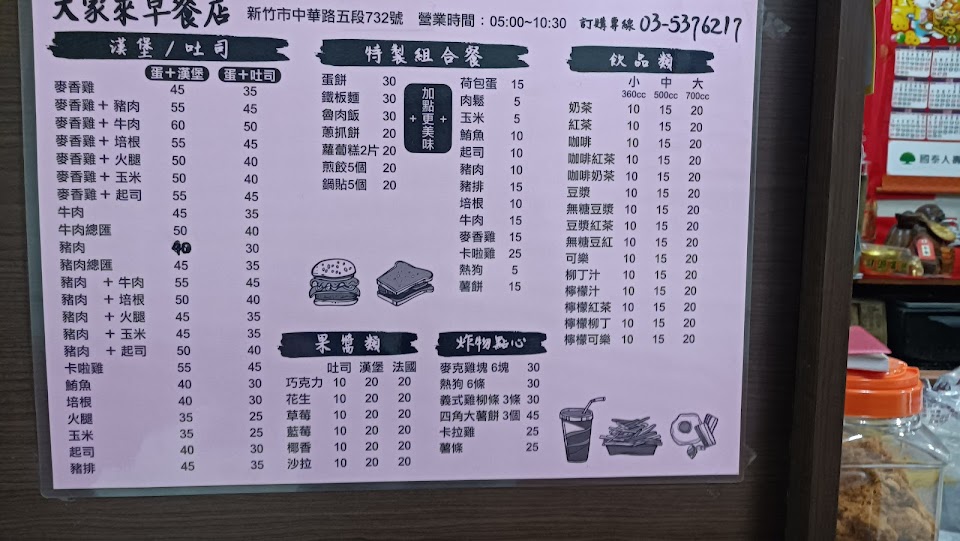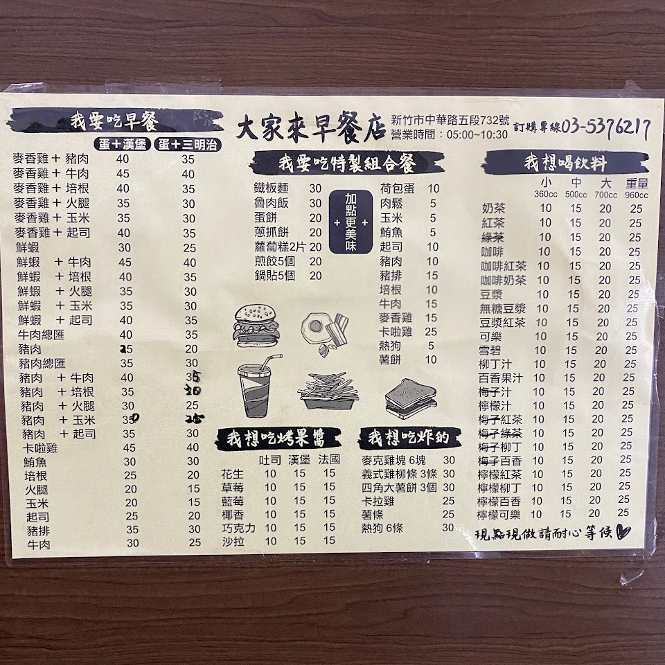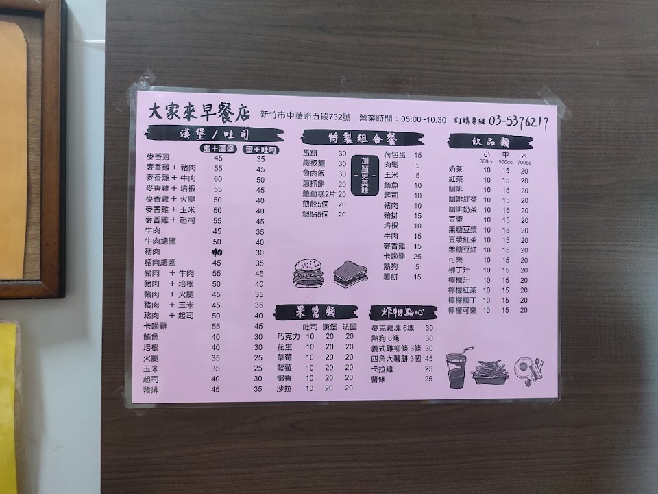 2024最新在地推薦餐廳的菜單_大家來早餐店的菜單、圖片