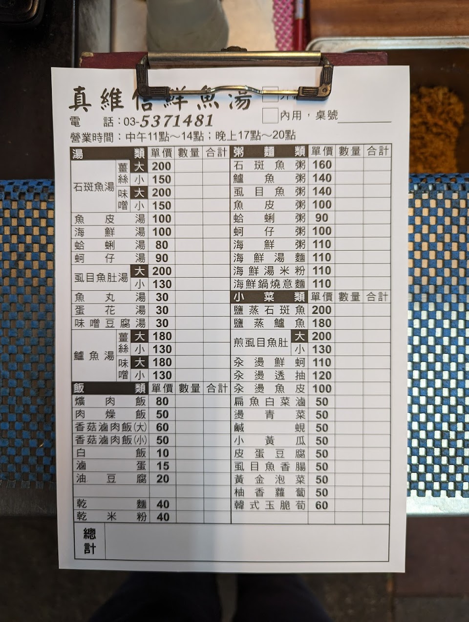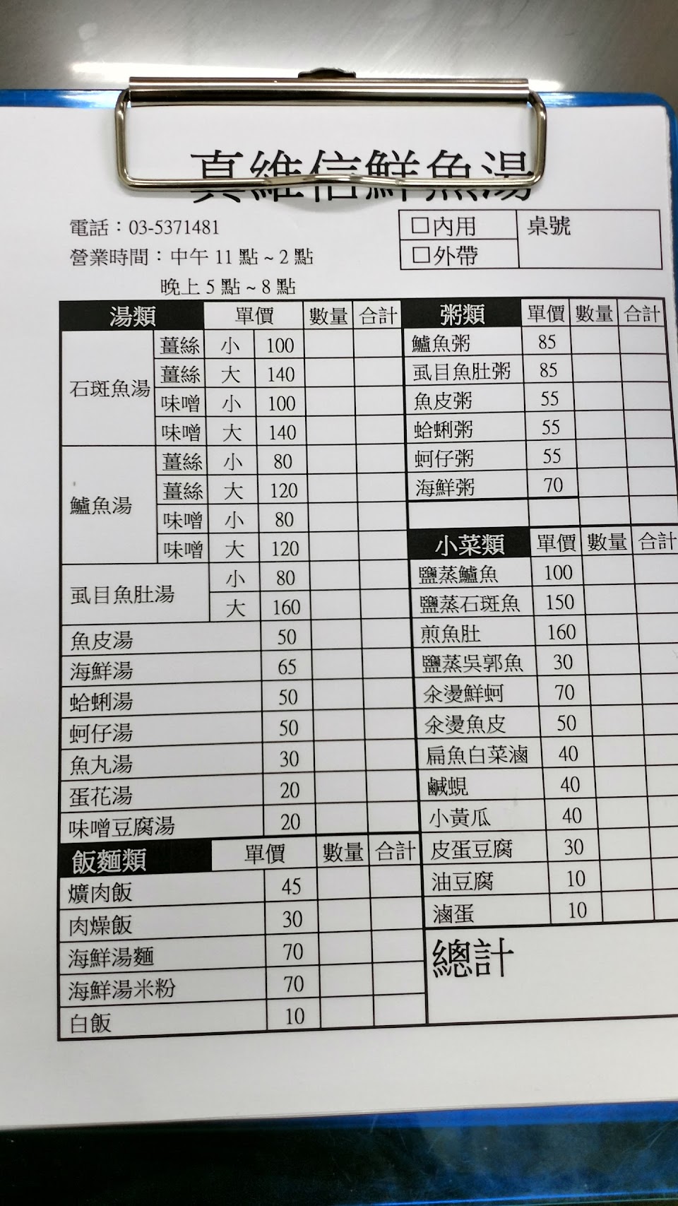 2024最新在地推薦餐廳的菜單_真維信鮮魚湯的菜單、圖片