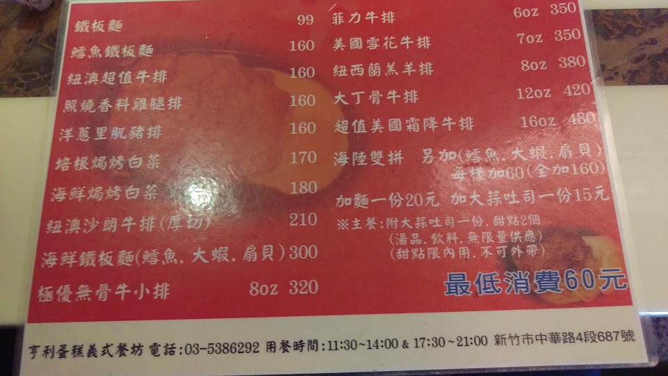2024最新在地推薦餐廳的菜單_亨利蛋糕義式餐坊的菜單、圖片