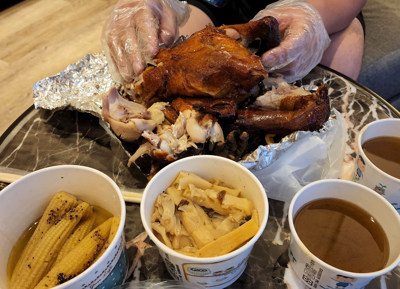 老闆娘說這次吃起來可能只有7、80分,因為她的雞都要經過烘烤一小時,這次我們有點晚預定,她怕我們餓所以一直高溫回烤,只烤了3、40分鐘,只怕我們吃到不美味的雞,其實我們只是怕太晚耽誤到老闆娘打烊休息,老闆娘人真的很好很健談,知道我們外地來玩還推薦我們好吃的桑椹冰跟景點。