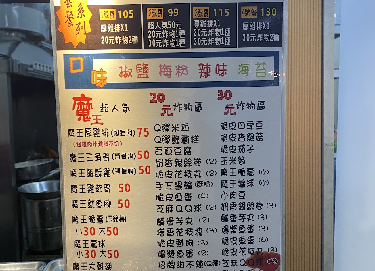 疫情後,高雄新崛江的天使雞排收攤後,一直找不到那麽好吃的雞排,直到我在離自己屏東住家附近,廣東路上偶然買過魔王狂爆厚切雞排,嚐鮮一次後就找到那記憶的味道… 兩位年輕的老闆應該是不斷精進手藝才調配出如此好吃,跟天使雞排並駕齊驅的好味道,做生意很客氣,服務超好,隔壁的吳媽媽紅茶冰的冬瓜檸檬也超讚,兩攤都是年輕有禮貌的年輕人,加油加油,屏東好味道就靠你們傳承延續下去了