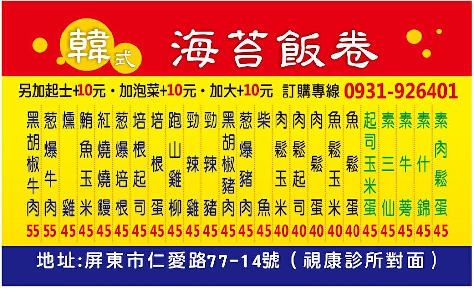 2024最新在地推薦餐廳的菜單_海苔飯捲的菜單、圖片