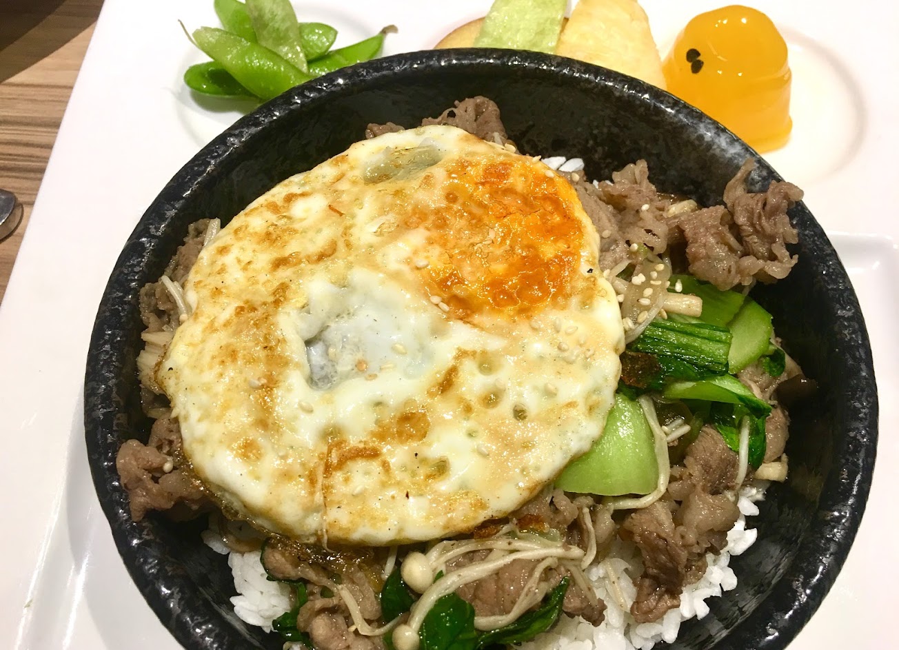 在附近店家不開心所以繞來這覓食,正值中秋連假比較忙碌,但店員有耐心等候並介紹,送來的水是冰鎮過的檸檬水,讓帶著大嬰的我們也不覺得辛苦了。點的番茄牛肉燉飯和燒肉丼肉質都有點老,但明太子海鮮薄餅的表現非常之優,餅皮是Q軟的,副餐現打果汁也很好喝。
