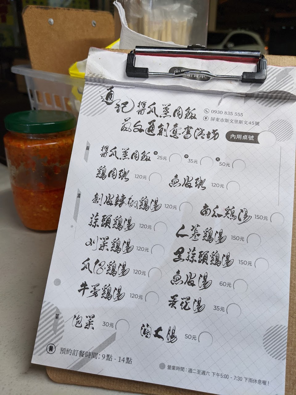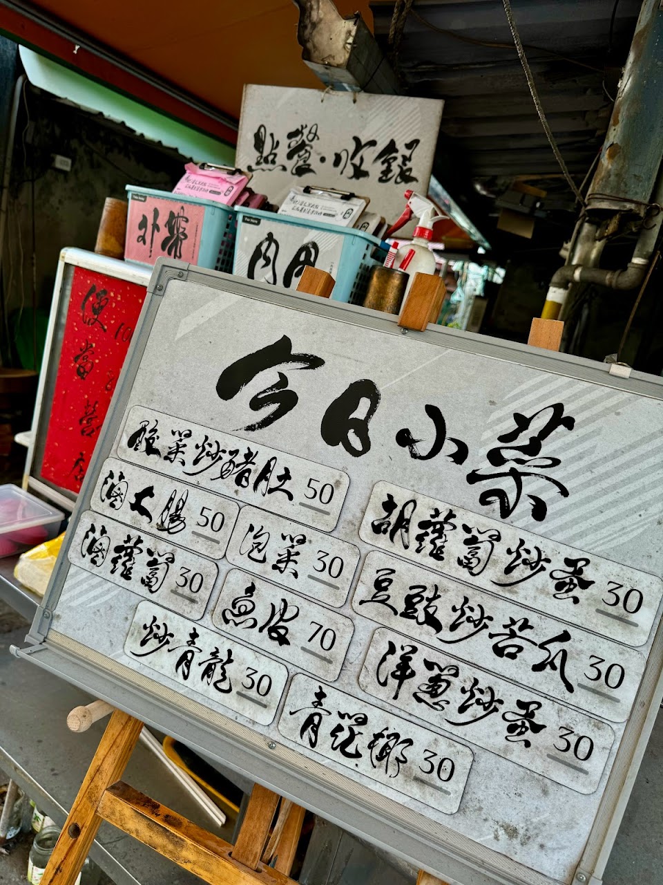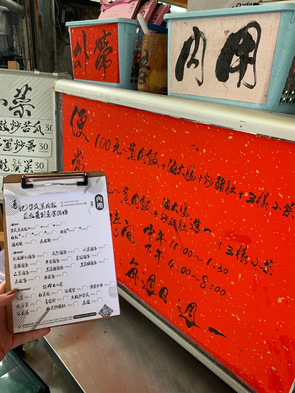 點菜單及招牌的字體確實很有書法藝術?感,但賣的卻是「飯、湯?、菜」三個主要項目,菜單內容繁多就看自己喜歡?的品項點餐嚐嚐?⋯⋯