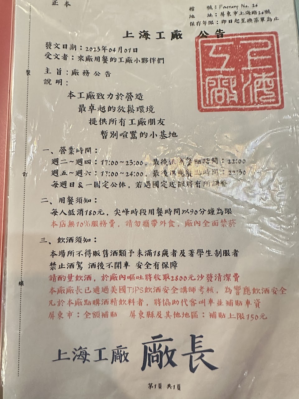 2024最新在地推薦餐廳的菜單_上海工廠 Factory26的菜單、圖片