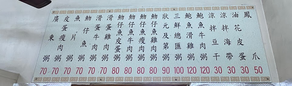 各式稀飯都很大碗不到百元,味道不錯,外帶可以事先打電話。