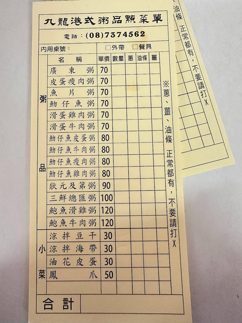 2024最新在地推薦餐廳的菜單_九龍港式粥品的菜單、圖片