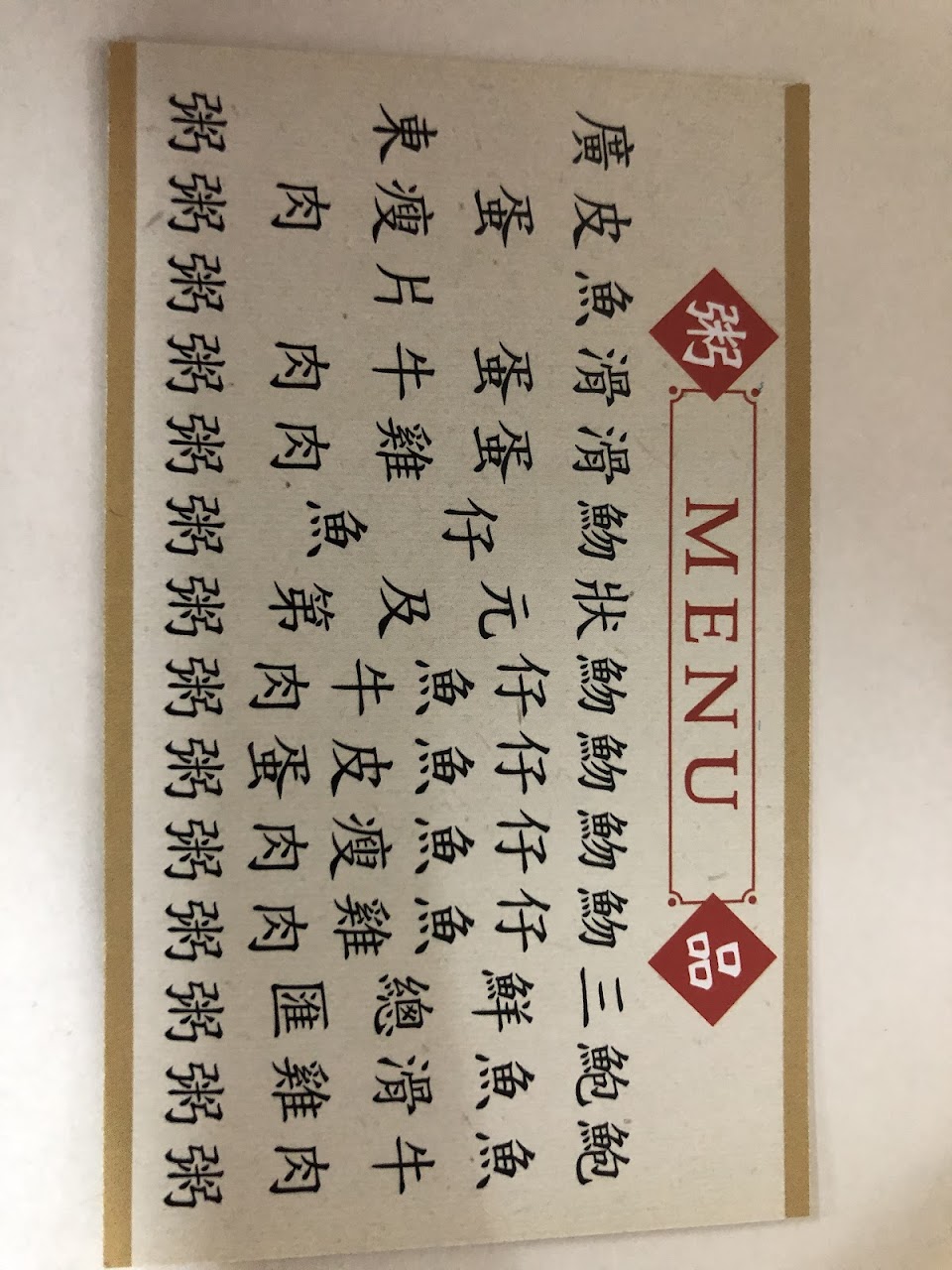 正統的港式廣東粥底,口味選擇多樣,如果不要“蔥”、“薑”或“油條”放入粥裡,記得在點餐時註明哦!