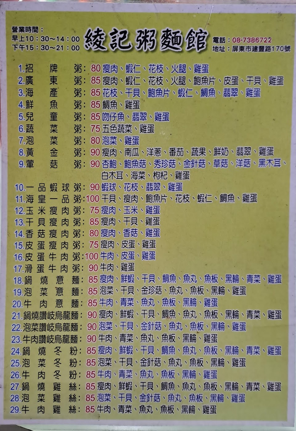 2024最新在地推薦餐廳的菜單_綾記粥的菜單、圖片