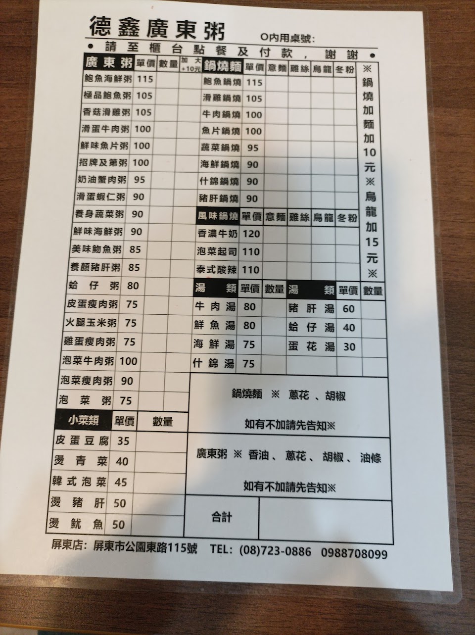 2024最新在地推薦餐廳的菜單_德鑫廣東粥的菜單、圖片