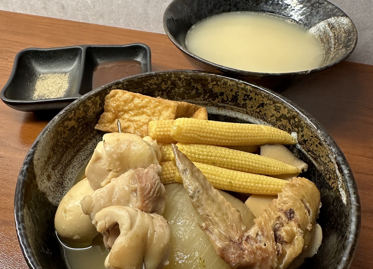 如果有點關東煮就會附一碗珍貴的雞白湯,喝起來非常濃郁可以試試,高麗菜捲也一定要試試裡面有魚肉的碎塊,增添了口感,醬料有點番茄醬的感覺但裡面混了其他東西,如果來吃也可以沾沾看。市內環境屬於開放式的,但也有一區一區的間隔跟朋友一起來剛好可以坐一區,放菜單的地方有提供水如果渴了也可以取用。