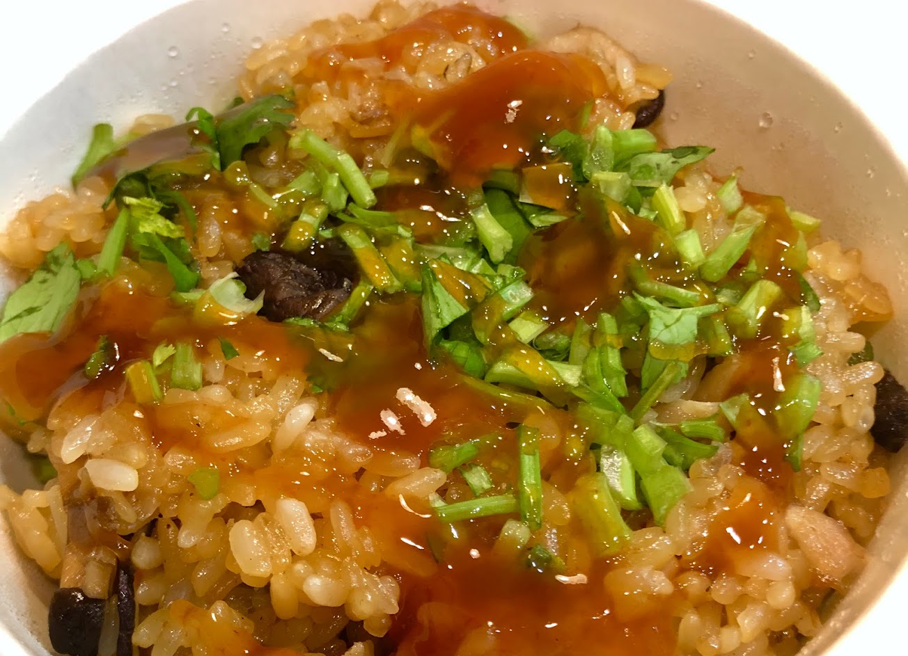 油飯粒粒分明、Q彈好吃、香氣十足、有些肉絲、香菇在上面,料都有入味,香菇絲咬下去也是有汁的那種,愛吃蔥的,切一點生蔥花配也很好吃!